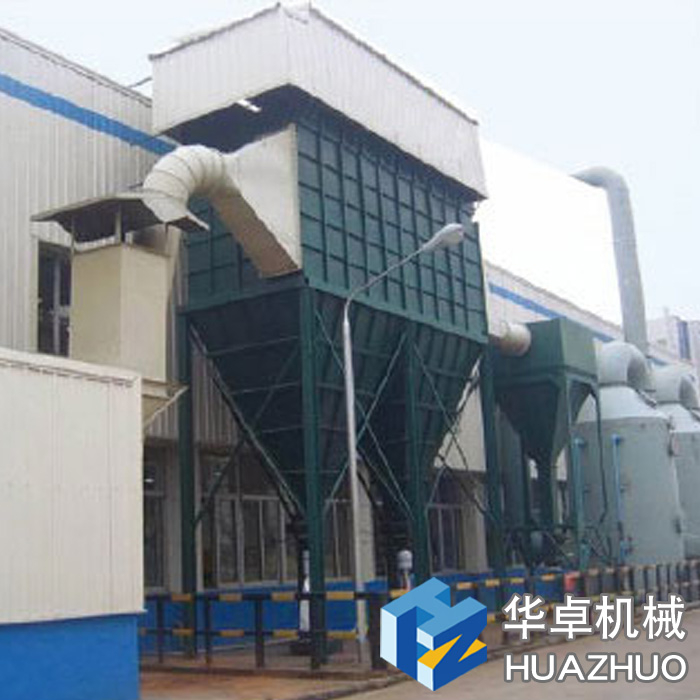 含氣煙氣由入口進(jìn)入塵氣通道,然后折下進(jìn)入灰斗。當(dāng)氣流撞擊導(dǎo)流板,轉(zhuǎn)向塵氣袋室時(shí),粗穎粒將靠慣性下落灰斗底部,細(xì)粉塵隨氣流上升,氣流穿過濾袋時(shí),粉塵即被阻留在濾袋表面。凈氣通過各濾袋口匯集到凈箱內(nèi),再由各室出風(fēng)蝶閥進(jìn)入凈氣排風(fēng)道排出。LCMD型袋收塵器為分室離線清灰,每室濾袋分成數(shù)組,每組數(shù)條。隨過濾過程的不斷進(jìn)行。濾袋外表層積塵逐漸增多,從而使收塵器阻力升高,當(dāng)阻力升至一定范圍時(shí)(1200~1500),清灰控制系統(tǒng)PLC機(jī))發(fā)出信號(hào)首先關(guān)閉切換閥打開脈沖閥,壓縮空氣通過噴管向每條濾袋噴射氣流,使濾袋產(chǎn)生變形、震動(dòng),達(dá)到清灰的目的清灰結(jié)束后,切換蝶閥再次打開。收塵器又進(jìn)入過濾狀態(tài),互不干擾,實(shí)現(xiàn)了長(zhǎng)期連續(xù)作業(yè)。提高了清灰效果。