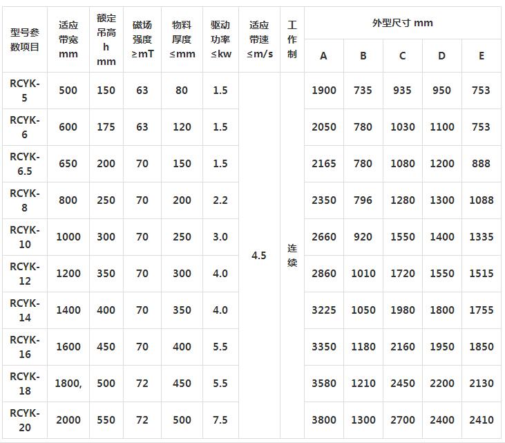 注:各型號都有高于國標(biāo)的特強型T1、T2和T3產(chǎn)品設(shè)計,額定吊高處磁場強度分別為:90mt、120mt、150mt。